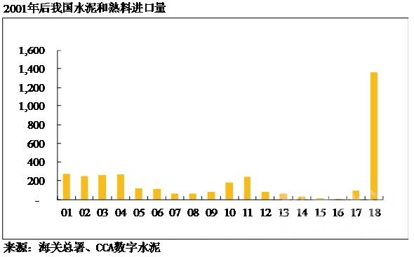 2017年以前,中國水泥年進口量最多不到300萬噸,2016年更是達到了歷史低谷的6.5萬噸。但隨著我國沿海地區(qū)熟料價格高企,2018年以水泥熟料為主要產(chǎn)品的進口量爆發(fā)性增長,僅當(dāng)年的進口量就達到1363萬噸,比2005-2017年13年進口量的總和還多。