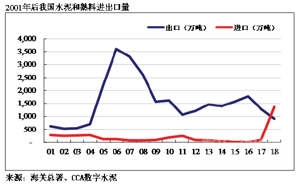 2018年無論對于中國水泥貿(mào)易還是全球水泥貿(mào)易來說,是個特殊的年份,中國作為全球最大的水泥需求市場,從一個過去水泥出口遠高于進口的國家,轉(zhuǎn)變?yōu)橐粋€水泥進口大國。2018年水泥及熟料的進口總量為1,363萬噸,高于出口總量459萬噸。